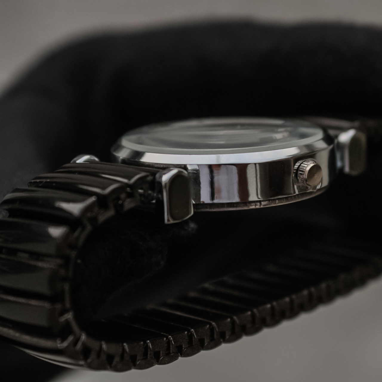 •Case/Band Color: Gunmetal/Black (Sleek, dark metal finish).